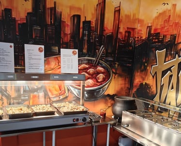 我们精心熬煮高汤,慢火炖煮多小时,搭配鸡肉、牛肉或猪肉汤面,让你吃得饱饱的!小胃口?一碗也可以分两人吃。素食者和纯素者也别错过我们的特色麻婆豆腐拌面:微辣过瘾,唇齿留香。享用前别忘了把豆腐和浓郁酱汁充分拌入面条中——想更辣?直接说,加我们自家手炒辣椒油!
